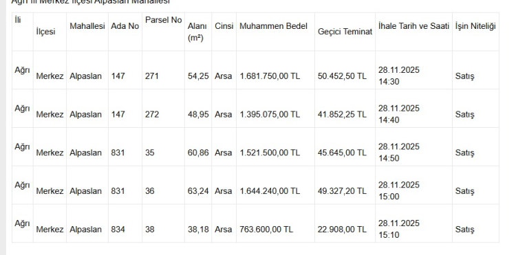 Ağrı Belediyesi’nden tartışmalı arsa satışı! 5 taşınmaz 7 milyon TL’ye ihaleye çıkarılıyor