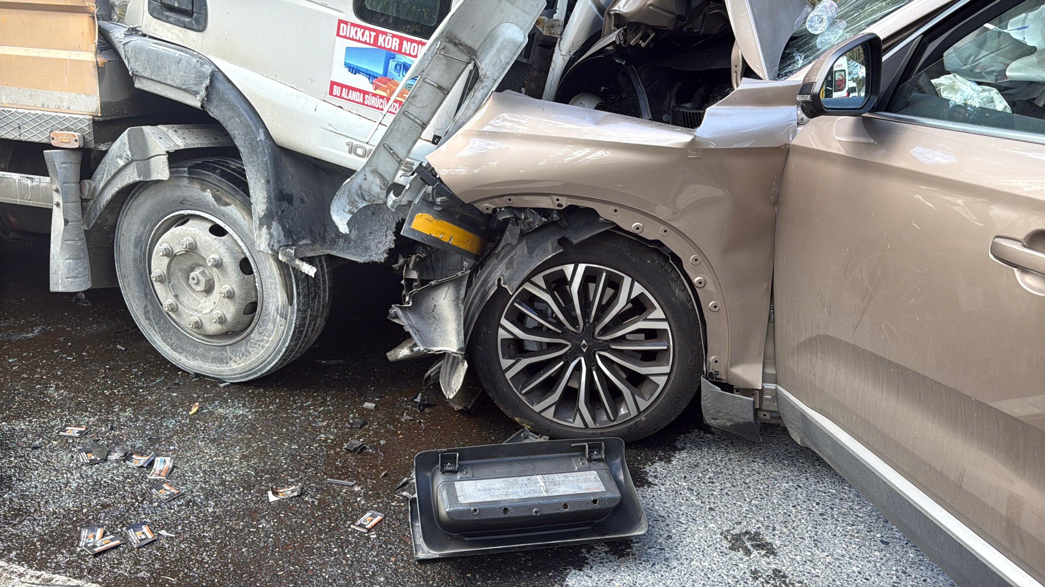 İstanbul’un Sarıyer ilçesinde, Asuman K. (47) yönetimindeki cip ile Yasin Ç.’nin (52) kullandığı beton dökme kamyonu kafa kafaya çarpıştı. Kazada kamyonda bulunan Ali Osman U. (25) dahil 3 kişi yaralandı. Yaralılar hastanelere kaldırılarak tedavi altına alındı.